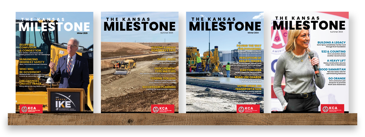 Kansas Contractors Association is the leading voice of Kansas’ transportation industry. Founded in 1923, we represent more than 220 contractors and suppliers engaged in heavy construction across the state. What is heavy construction? Think “planes, trains and automobiles.” Our members build the infrastructure that our families, our communities and our economy depend on every day, including highways, bridges, utilities, clean & storm water systems, railways and airports. Together, we build Kansas.